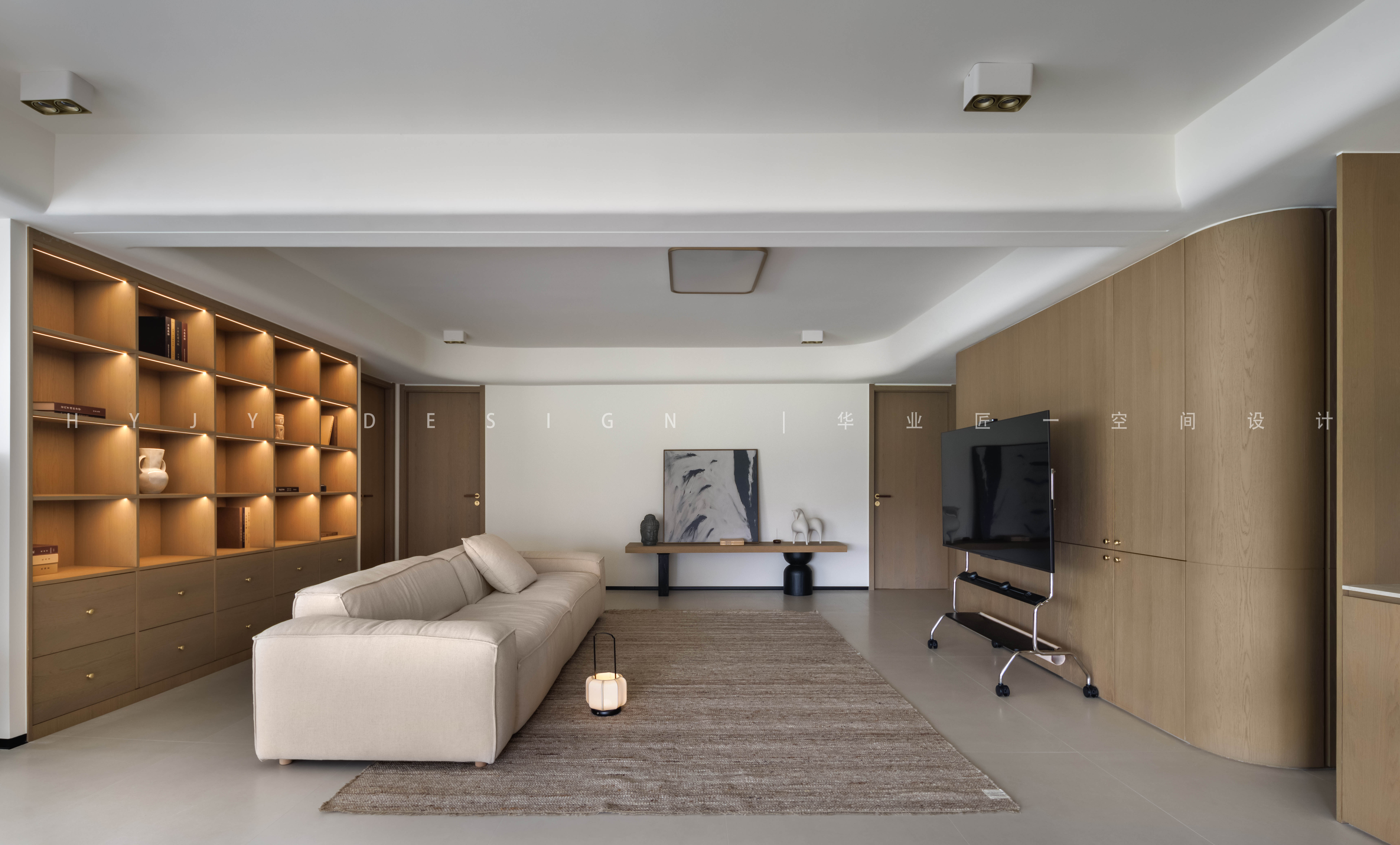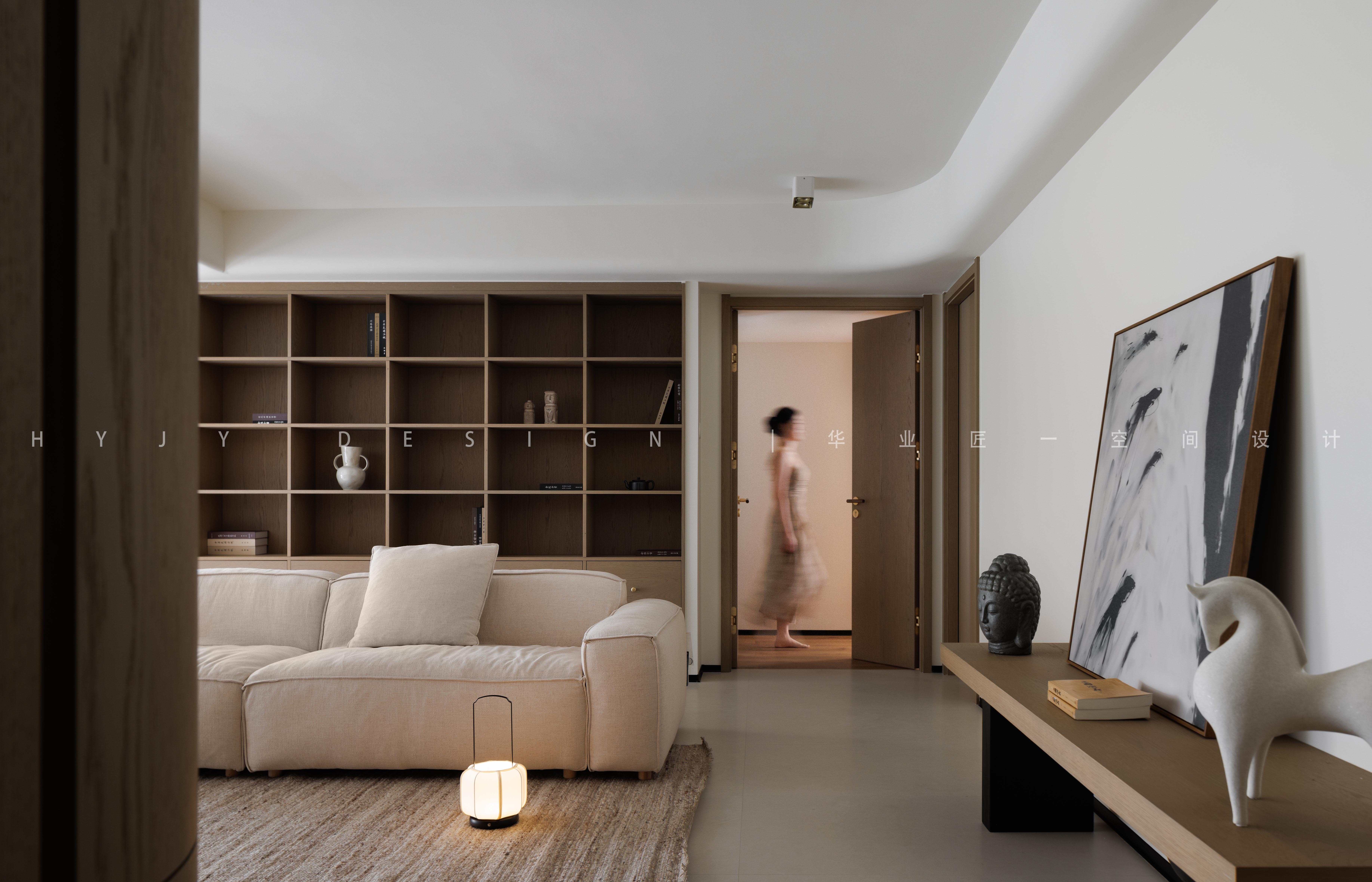 对于空间的调性,业主希望整体是温润舒展的,且有两个正在读书的小朋友,希望有大量的储物空间