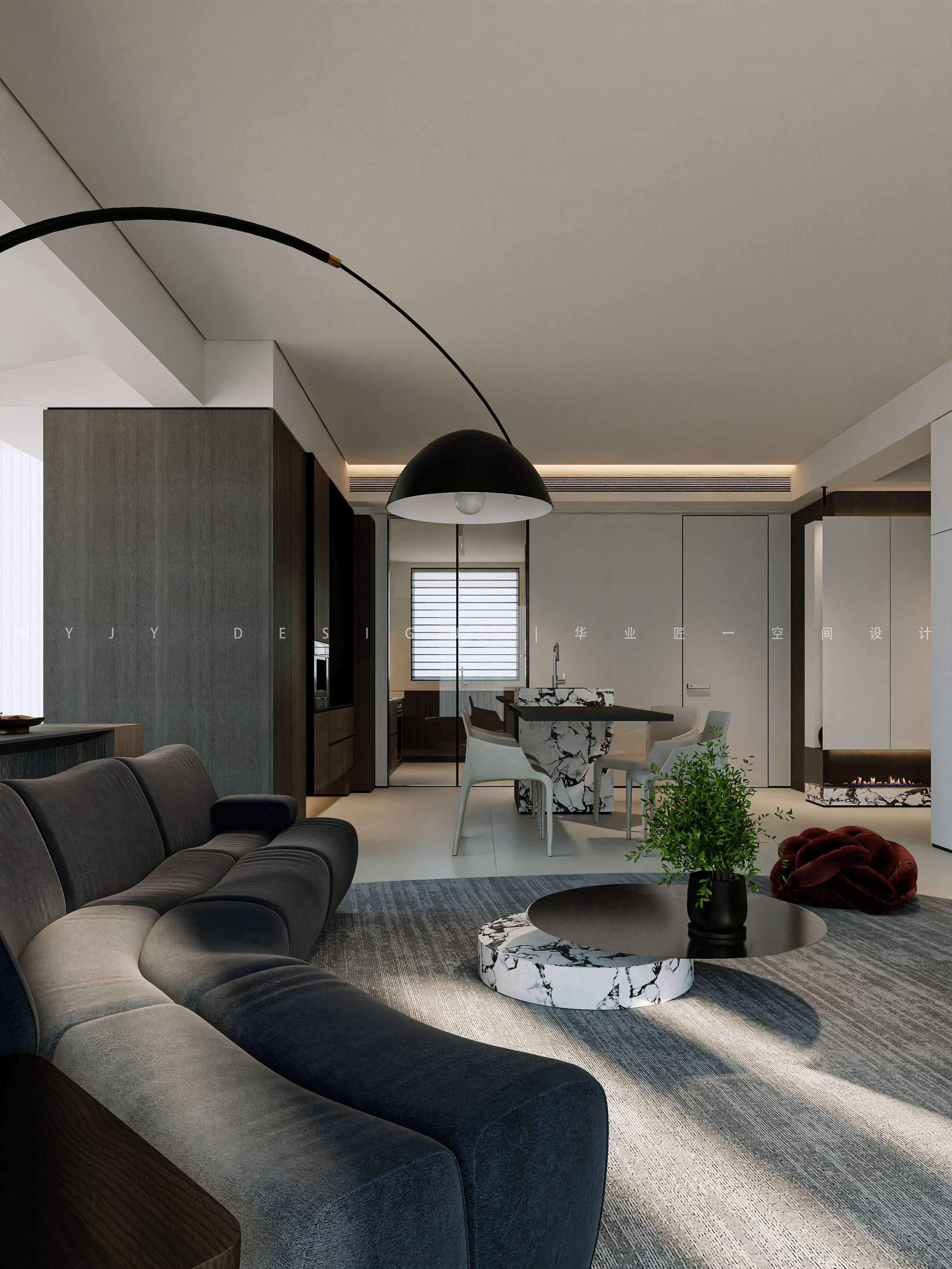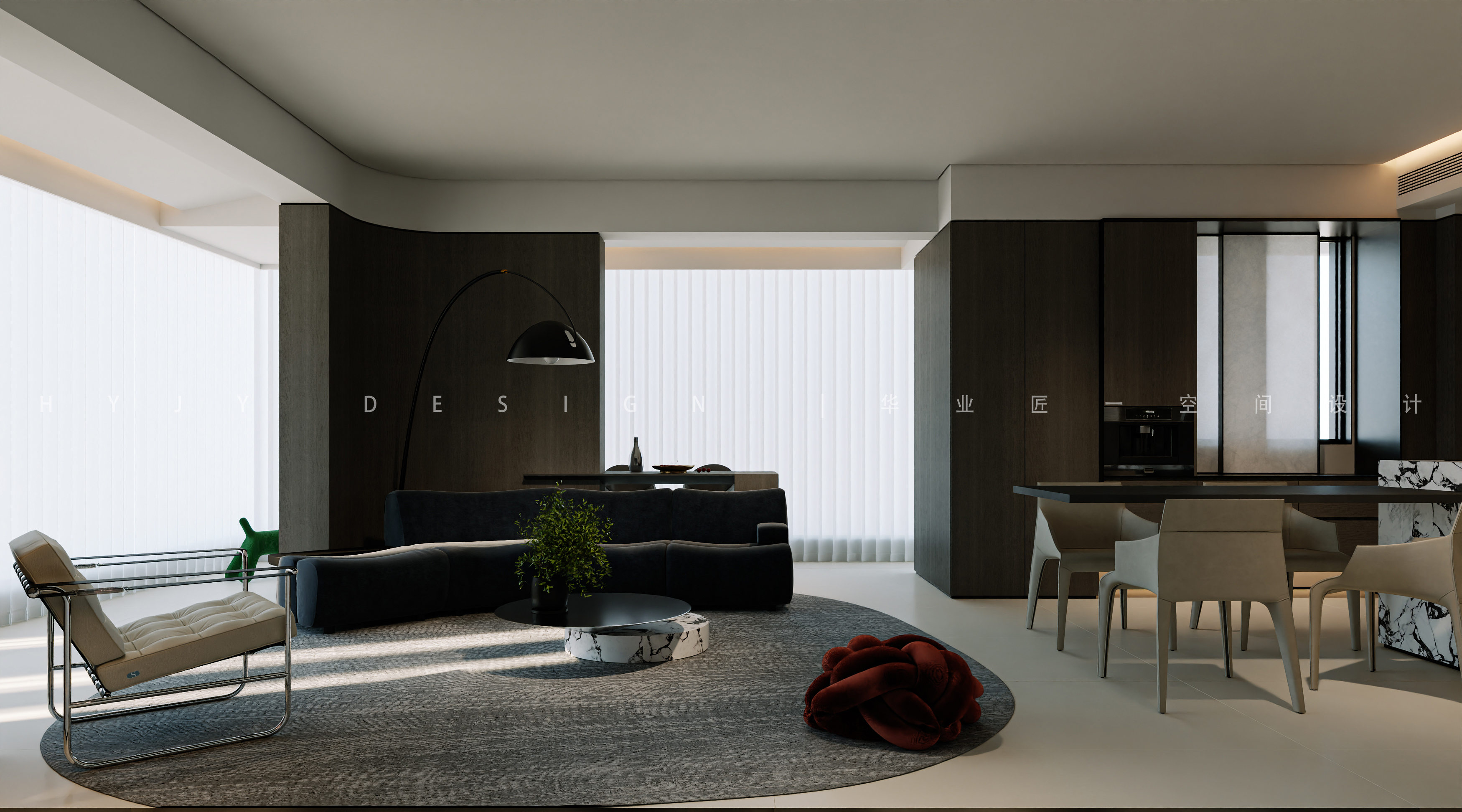 以黑、白、灰为主色调,强调线条感、留白和功能性
