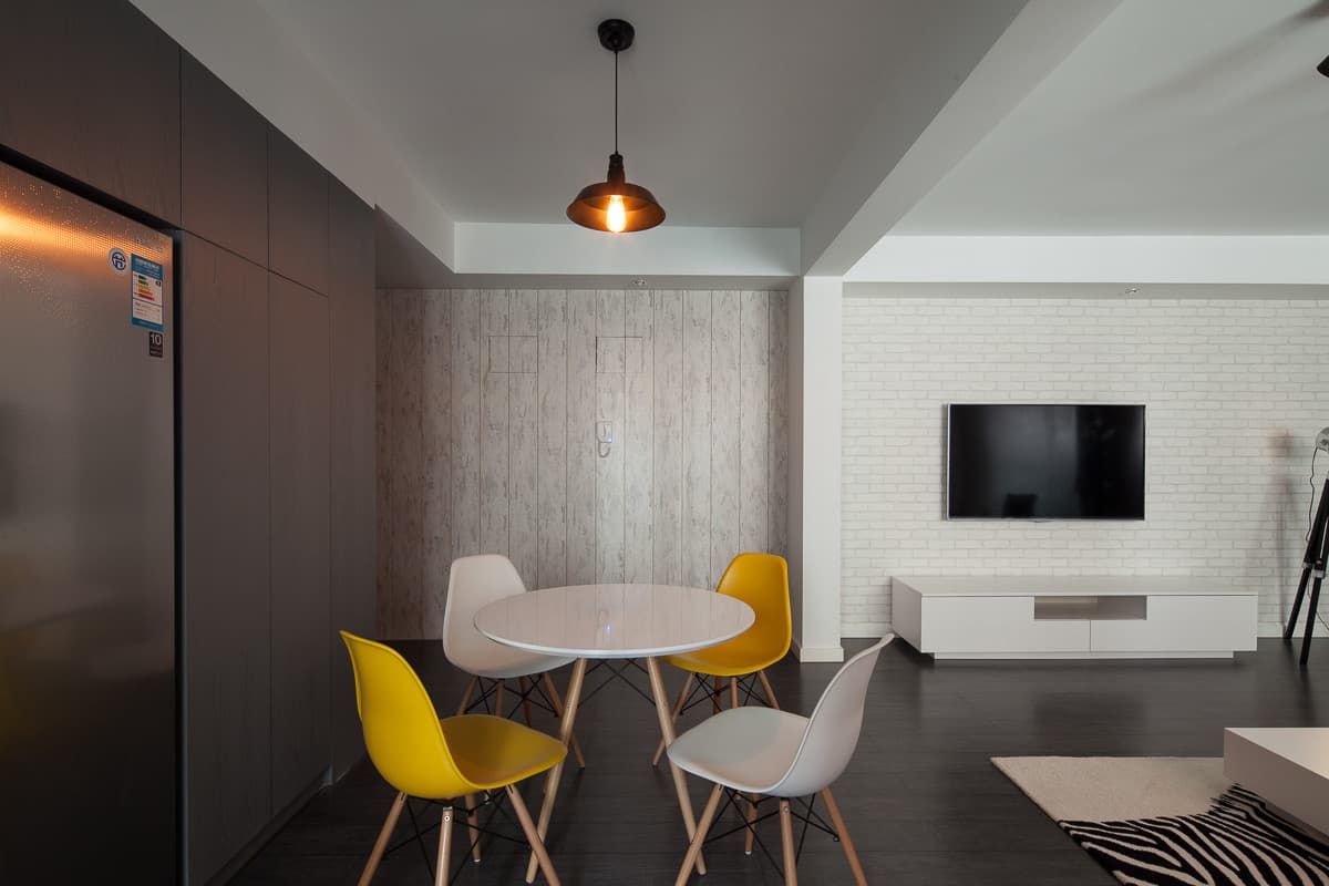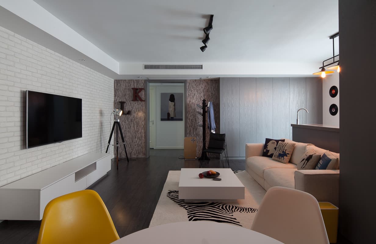 这是三口之家的房子,整体设计以公共空间为空间重点,客厅的设计打破传统思维。