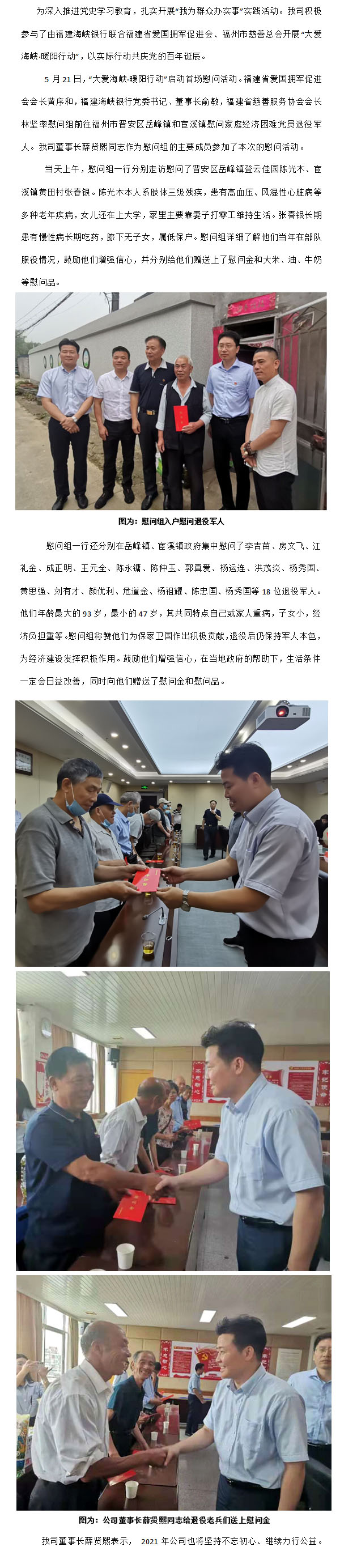“大爱海峡 暖阳行动”慰问党员退役军人活动