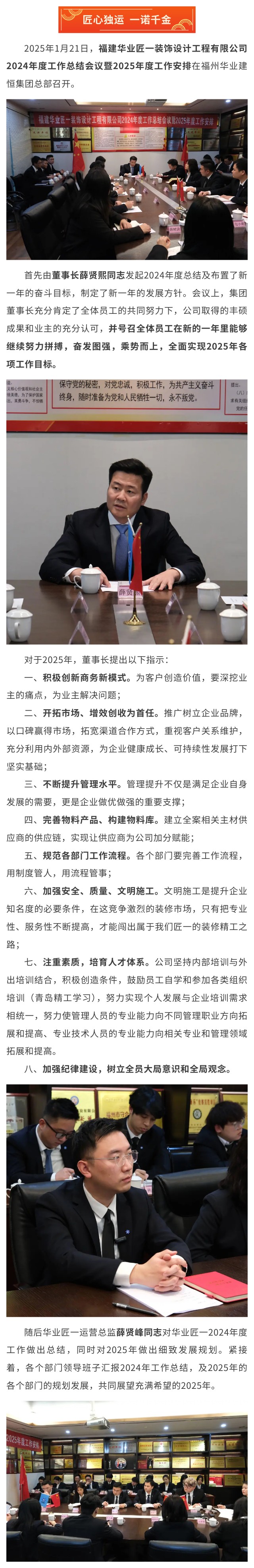 福建华业匠一装饰设计工程有限公司2024年度工作总结会议暨2025年度工作安排顺利召开