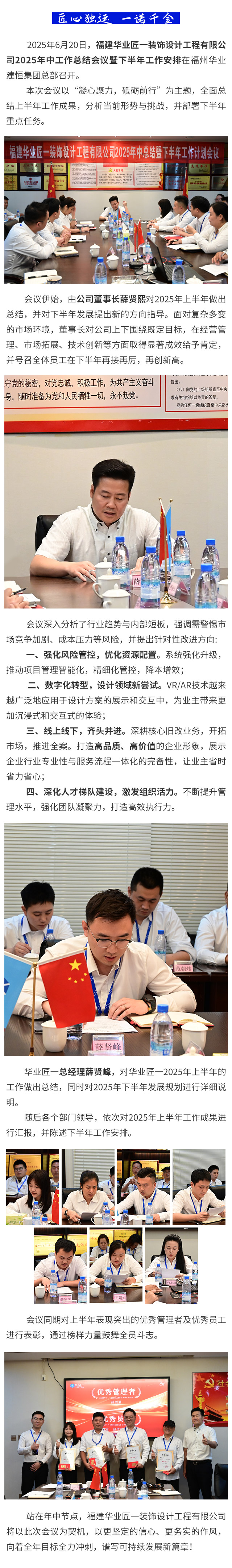 福建华业匠一装饰设计工程有限公司2025年中工作总结会议暨下半年工作安排顺利召开