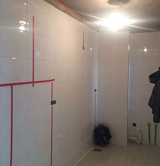 11、所有贴瓷砖处有大白涂料的,必须全部起墙皮,清理干净,以免日后瓷砖脱落造成人员、它物毁坏。