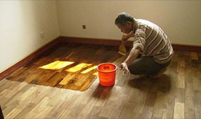 03、首先处理面板上的污渍并用360#砂纸打磨平整,砂纸打磨需顺木纹打磨,刷完一遍底漆干透后补钉眼和缝隙。